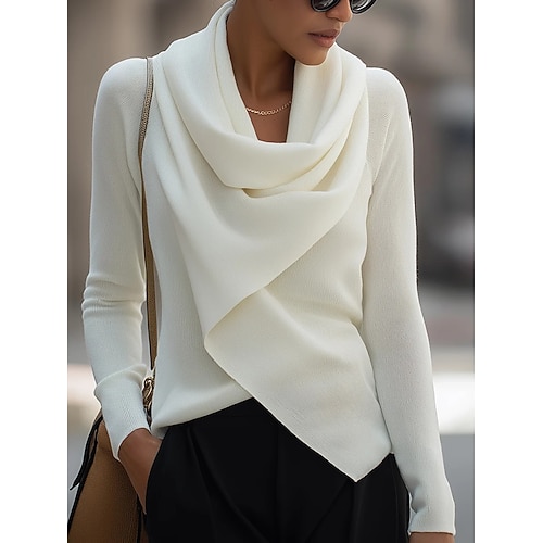 Per donna Felpa Elegante Vintage Moda Tinta unica A Coste All'americana Scollo a V profondo Pieghettato Stratificato Orlo asimmetrico Manica Lunga Top Regolari Maglia Formale All'aperto Casa Bianco