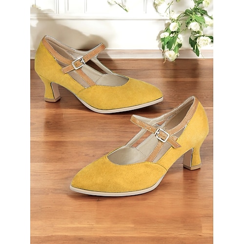 Scarpe da ballo latino da donna dorate con cinturino incrociato e tacco medio - tacchi vintage Gatsby per feste e spettacoli da ballo