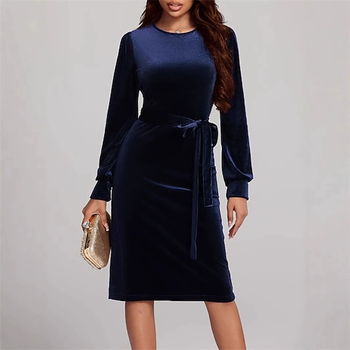 Per donna Abito Midi Abito di Natale Abito in Velluto Abito da Cocktail Elegante Moda Moderno Quotidiano All'aperto Festa serale Vestibilità regolare Semplice Manica Lunga Girocollo Blu Nero Rosso