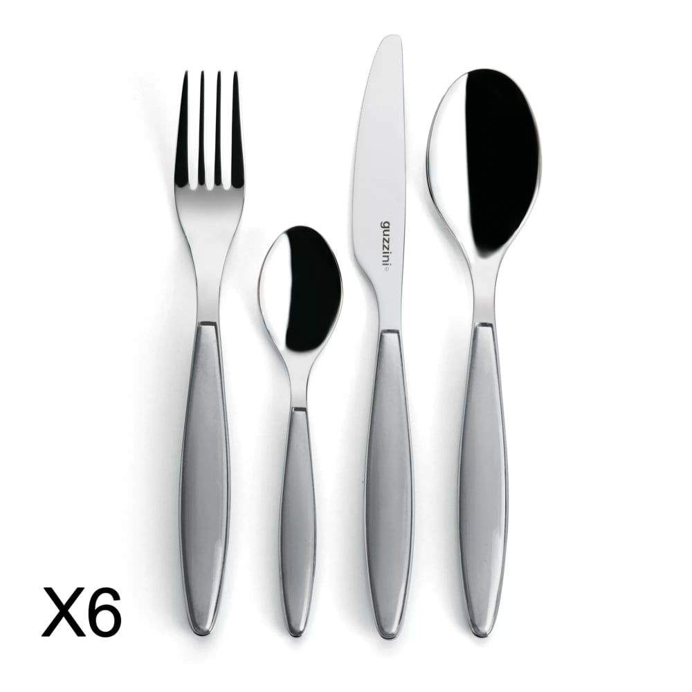 Ménagère 24 pièces en acier inoxydable et acrylique gris clair