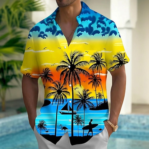 Per uomo Albero di Cocco Paesaggio Piante Tropicali Camicia hawaiana estiva Camicia con Bottoni Camicia Aloha Manica Corta Hawaiano Casuale Vacanza Estate Primavera Collo ripiegato Stampa 3D camicie