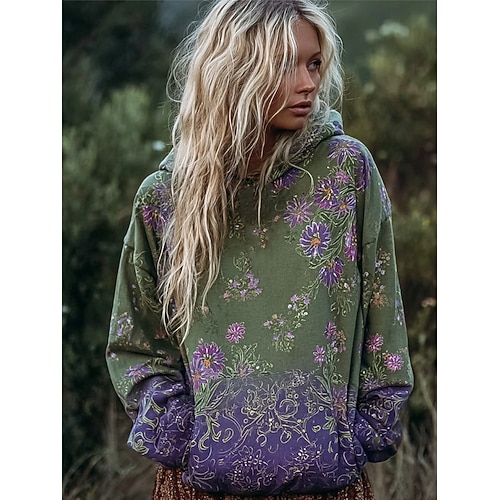 Felpa con cappuccio vintage boho 3D stampata per donne felpa patchwork con cappuccio felpa con zip floreale moda vintage casual con maniche lunghe cappuccio uso quotidiano da strada patchwork tasca