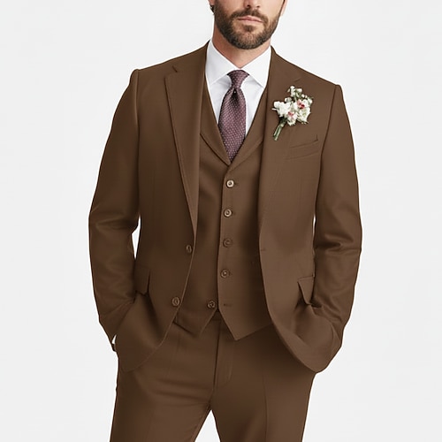Uomo Affari Casuale Completi in Tweed Bavero a lancia Nero Marrone Quotidiano Affari Spina di Pesce Vestibilità su misura 3 pezzi Monopetto Due Bottoni