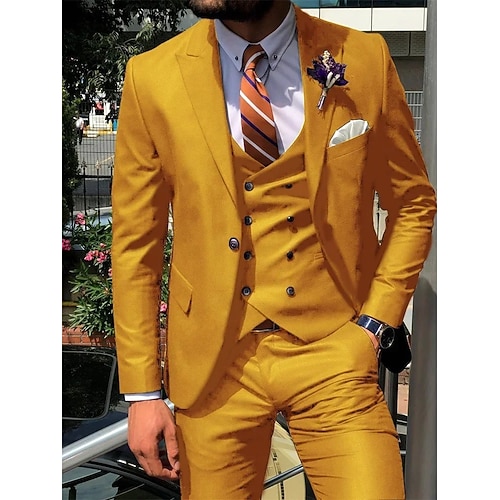 Uomo Matrimonio Matrimonio primaverile Abiti da festa Bavero a lancia Blu Nero Festa Affari Tinta unita Vestibilità su misura 3 pezzi Monopetto a un bottone