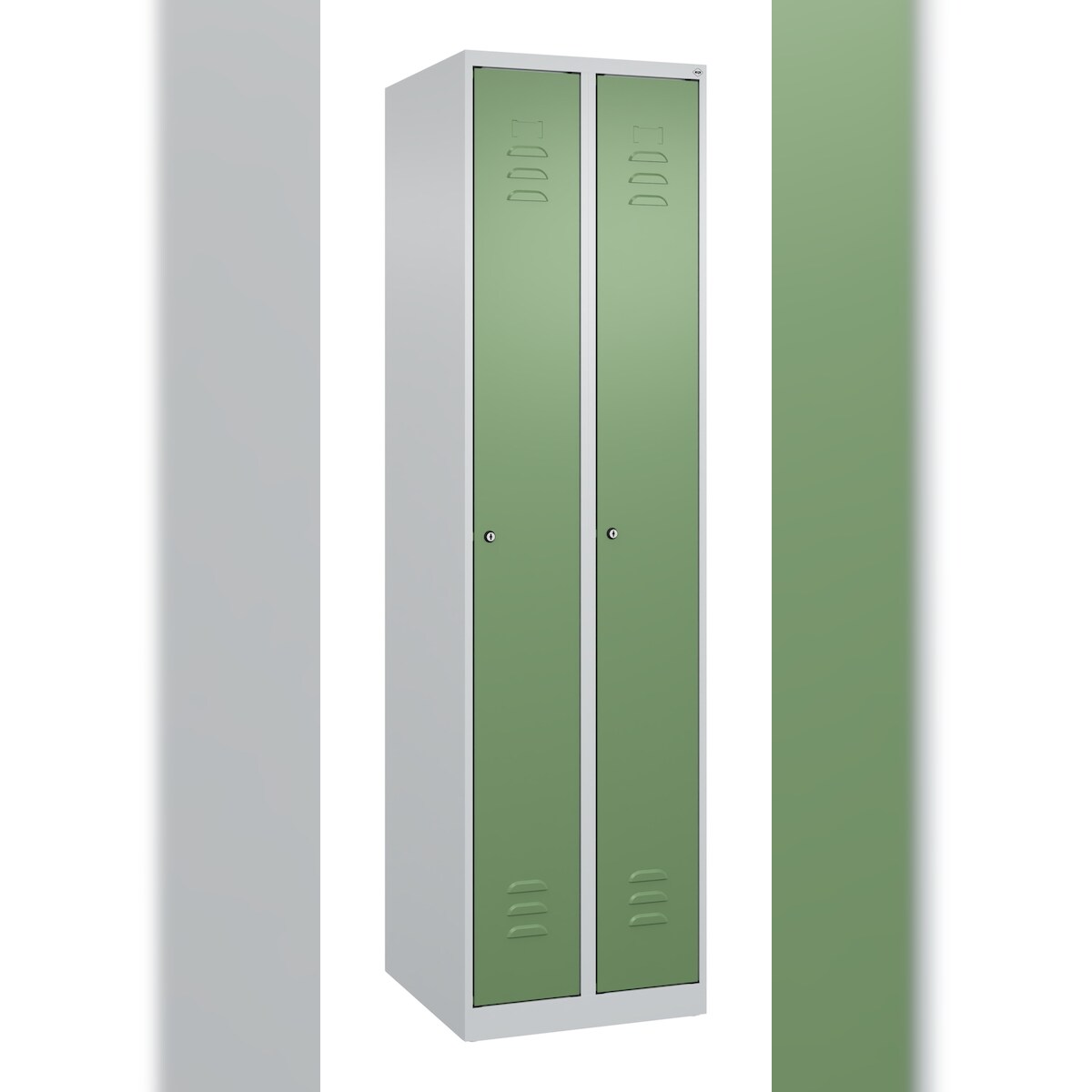 C+P Spind Classic PLUS, 2 Abteile, HxBxT 185x50x50cm, Zylinderschloss, Hellgrau/Resedagrün von PROREGAL