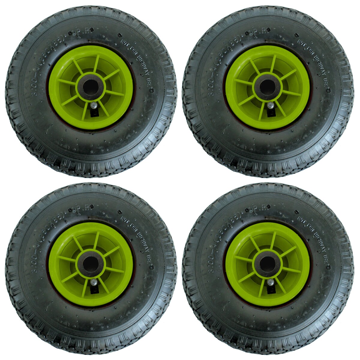 Baumarktplus 4x Sackkarrenrad Luftrad 260x85 mm 3.00-4 75 mm zentrierte Nabe Ø 20 mm grün robustes 4 PR Gewebe