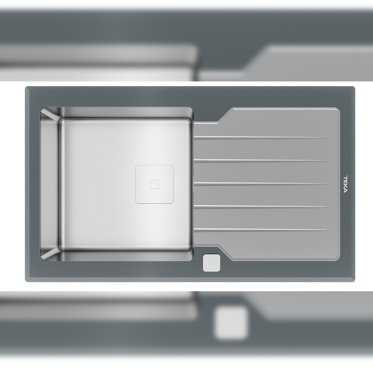 TEKA Diamond Glas-Einbauspüle mit einem Becken und Abtropffläche, reversibel, R15 Radius, Glas Grau, Edelstahl poliert 115100021