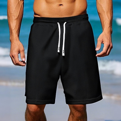 Per uomo Nido d'ape Shorts Pantaloncini Estivi Shorts da Spiaggia Coulisse Elastico in vita Tinta unica Comodità Lunghezza al ginocchio Quotidiano All'aperto Abbigliamento casual alla moda Vacanza