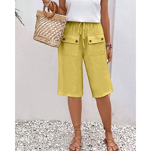 Per donna Chinos Shorts Vacanza Streetwear Essenziale Lunghezza al ginocchio Vita media Semplice Tasca Fascia Elastica Comodità Traspirante Inelastico Quotidiano All'aperto Streetwear Blu Grigio