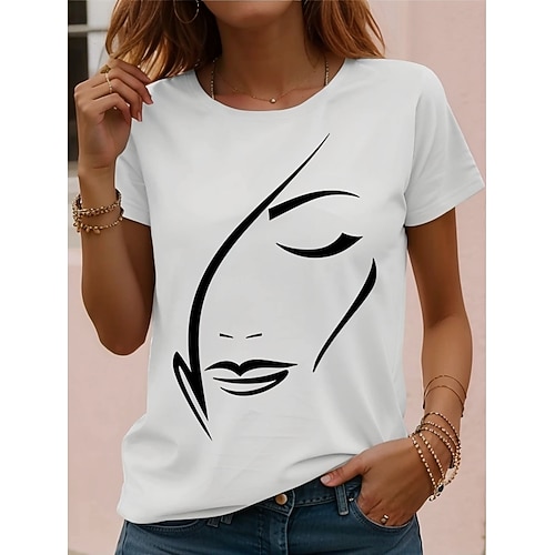 Per donna maglietta Nero Bianco Rosso Floreale Manica corta Informale Giornaliero Essenziale Rotonda Standard S