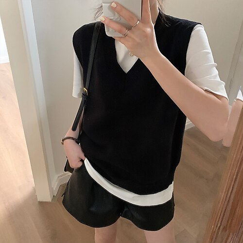 Per donna Felpa Maglione Vintage Streetwear Casual Tinta unica Scollo a V Lavorato a maglia Senza Maniche Top Regolari Maglia Quotidiano Ferie Uscire Nero Rosa Autunno Inverno