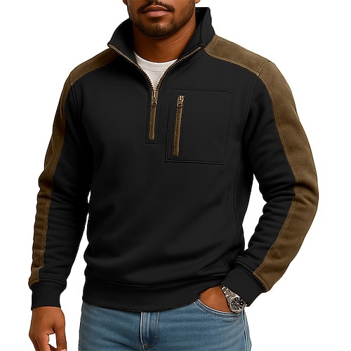 Per uomo Maglia Felpa con zip corta Nero Blu marino Marrone Grigio Mezza zip Blocco di colori Tribale Patchwork Sport Outdoor Quotidiano Ferie Poliestere Vintage Essenziale Etnico Autunno Inverno