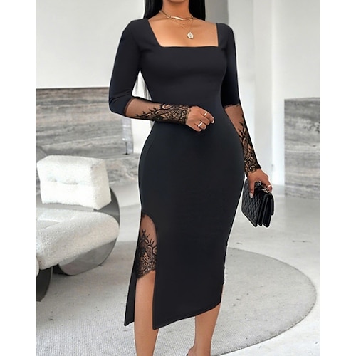 Per donna Abito Midi Abito con Paillettes Vestito da Festa Abito da Cocktail Abito a Portafoglio Elegante Moda Festa serale Feste Occasione speciale Vestibilità regolare Semplice Manica Lunga Collo