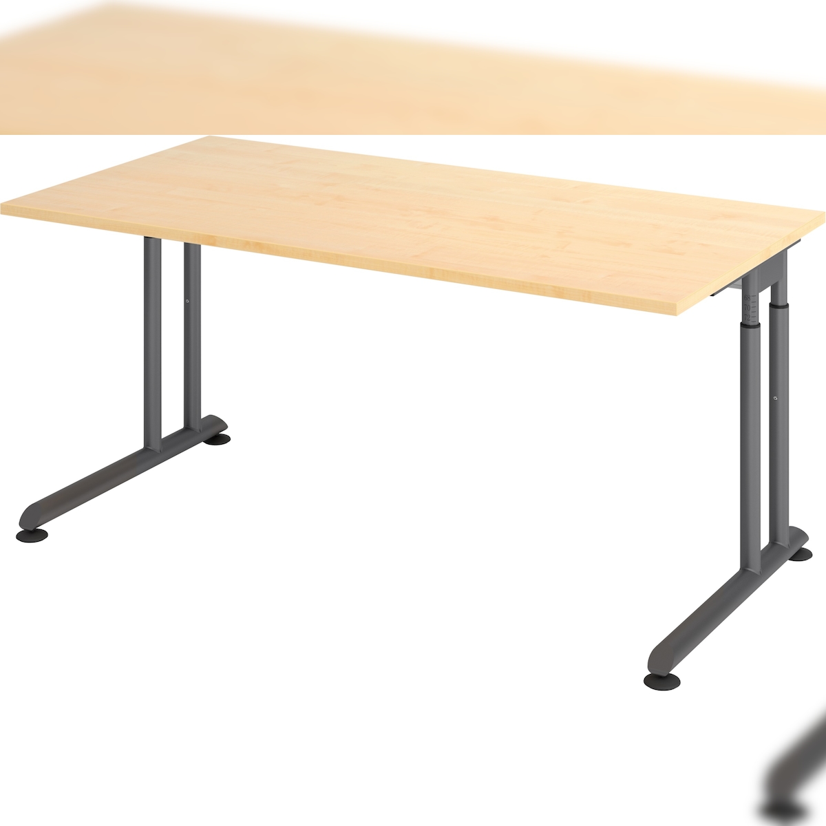 bümö höhenverstellbarer Schreibtisch Z-Serie 160x80 cm in Ahorn, Gestell in Graphit - PC Tisch für's Büro manuell höhenverstellbar, Computertisch