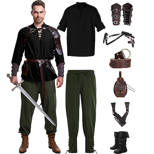Retrò Vintage Medievale Rinascimento Set di accessori Tunica Guerriero Vichingo Costume Per uomo Vichingo Halloween Carnevale Performance LARP Fiera Rinascimentale Adulti Gilet Cintura Borsa