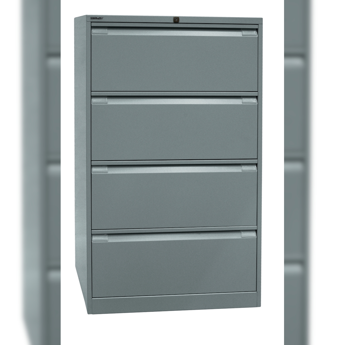 BISLEY Hängeregistraturschrank mit Schloss aus Metall in silber, 4 Schubladen, doppelbahnig - Hängeregisterschrank abschließbar, Hängeregistratur für