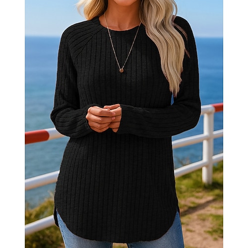 Maglietta da donna, felpa con texture, felpa waffle, tinta unita, business, moderna, manica lunga, girocollo, regular, top da lavoro, nero, blu navy, marrone, beige, autunno inverno