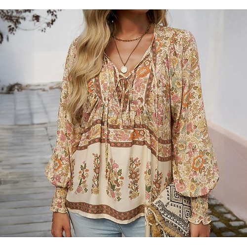 Per donna Camicia Blusa Floreale Boemia Informale Manica lunga A V Top regolari Giornaliero Stampa Giallo Rosa Blu marino Blu Arancione Estate Primavera Autunno