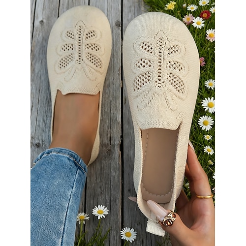 scarpe slip-on da donna in maglia marrone chiaro con motivo a farfalla – scarpe basse traspiranti per passeggiate estive, guida e comfort casual