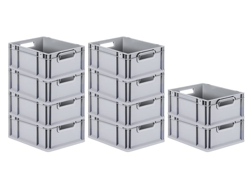 PROREGAL SuperSparSet 3x Eurobox NextGen Economy mit Auflagedeckel & 4x Verschlüsse Rot, Griffe offen, HxBxT 32x40x60cm, 65L, Eurobehälter, Box