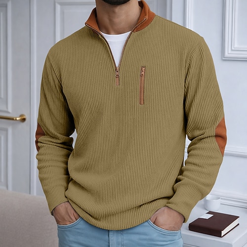 Da uomo Camicia di Velluto a Coste Maglietta Camicia a Maniche Lunghe Manica Lunga Con cerniera Autunno Inverno Autunno Inverno Blocco di colori Quotidiano Testurizzato Casual Con zip Oversize Ampio