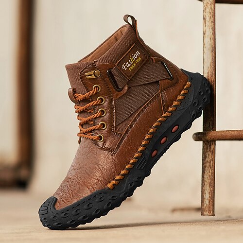 Per uomo Stivali Stivali da Lavoro Camminata Vintage Quotidiano PU Aumento Altezza Confortevole Stivali a Metà Polpaccio Allacciatura Tessuto almond Marrone scuro Nero Autunno Inverno