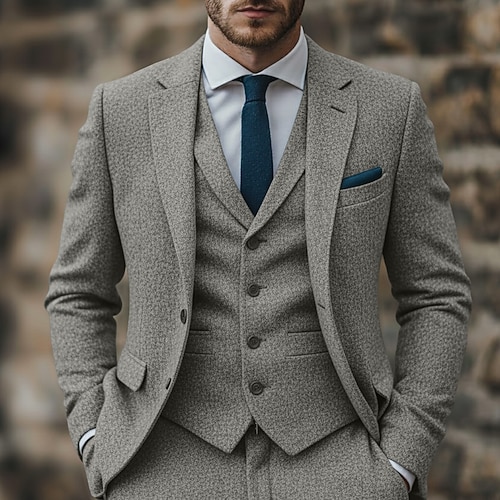 Uomo Affari Casuale Completi in Tweed Bavero classico Nero Grigio chiaro Affari Formale Tinta unita Vestibilità su misura 3 pezzi Monopetto Due Bottoni