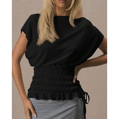 Per donna Maglietta Semplice Elegante Moda Classico Manica Corta Girocollo Top Regolari Quotidiano Uscire Weekend Tunica Elastico in vita Nero Bianco Grigio Estate Primavera