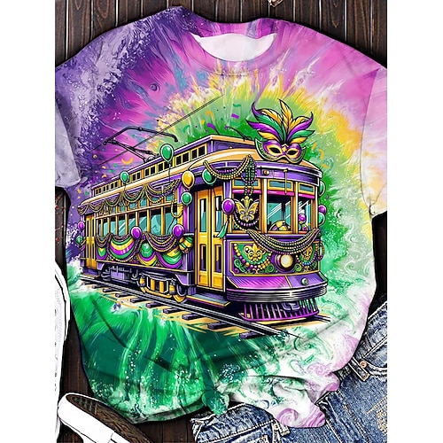 Carnevale Martedì grasso Per donna Maglietta Ombre Grafico Elegante Classico Casual Manica Corta Girocollo Top Regolari Quotidiano Stampato Viola Verde Estate Primavera
