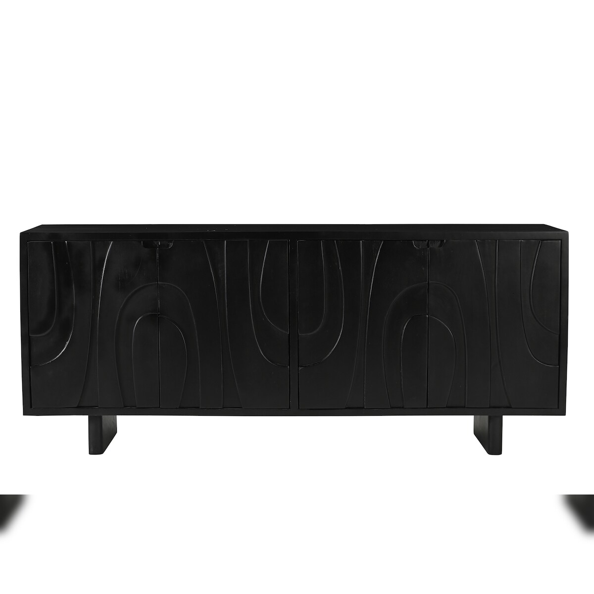 SIT Möbel Sideboard mit 4 Türen | Mangoholz schwarz | B 180 x T 43 x H 76 cm | 14704-11 | Serie BLACK SMOOTH