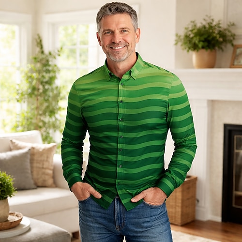 San Patrizio 2026 Retrò Vintage Anni '70 Camicia Camicia Aloha Lunghe Hippie Costume Per uomo Mascherata 4 Luglio Feste Festival Adulti Camicia
