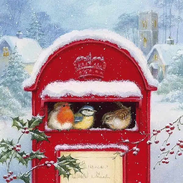 20 Winter Servietten Red Post Box Vögel 24x24cm