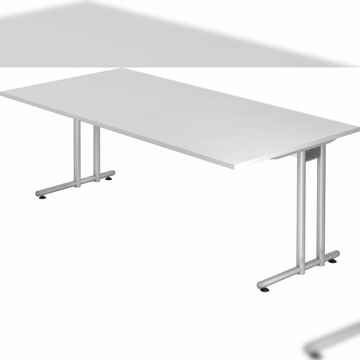 bümö Schreibtisch groß, N-Serie 200x100 cm, Tischplatte aus Holz in weiß, Gestell aus Metall in Silber - PC Tisch, großer Computertisch für's Büro,