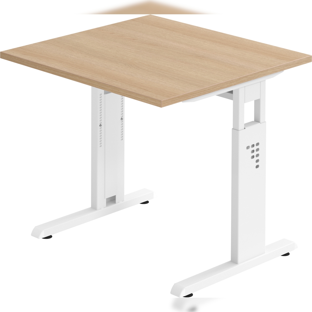 bümö höhenverstellbarer Schreibtisch O-Serie 80x80 cm in Eiche, Gestell in weiß - PC Tisch klein für's Büro manuell höhenverstellbar, Computertisch