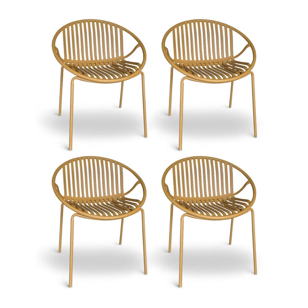 Lot de 4 fauteuils de table ocre en polypropylène et métal