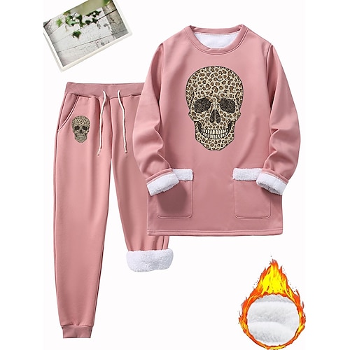 Felpa con teschio da uomo set 2 pezzi punk festa maniche lunghe crewneck vacanza gialla blu felpa 3D per tutte le stagioni designer