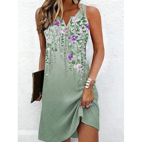 Per donna Normale Tuta Casual Floreale Senza Maniche Collo a U Tasca Stampato Streetwear Quotidiano Vestibilità regolare Blu Viola Fucsia Estate