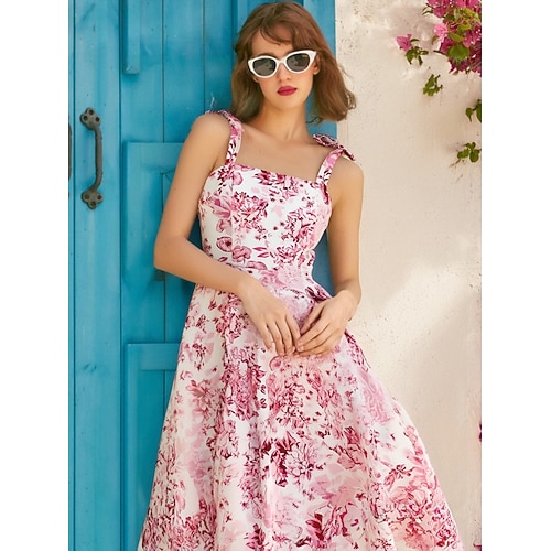 Retrò Vintage Anni 1950 Rockabilly Midi Gonna altalena Vestito Svasato Cinghia per spaghetti Floreale Costume Per donna Carnevale Vacanza Abbigliamento quotidiano Tè Adulti Vestito Estate