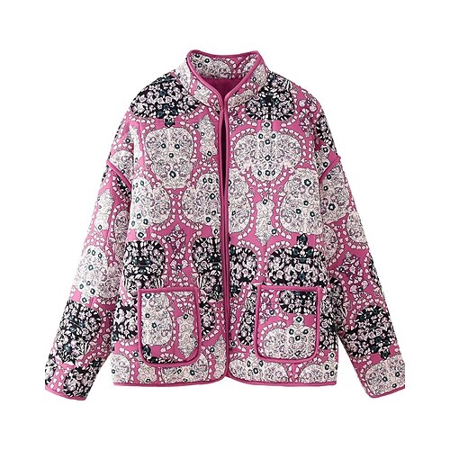Per donna Cappotto Invernale Giacca Casual Caldo Confortevole Cerniera Tasca Stampato Vintage Casual Floreale Vacanza Abbigliamento quotidiano Uscire Weekend Regolare Collo alla coreana Vestibilit