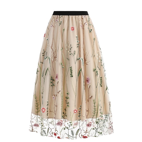 Per donna Gonna Gonne di garza Vintage Moda Midi Vita Alta Gonne Floreale Patchwork Ricamato Stampato Inelastico Streetwear Data Blu Aalbicocca Bianco Rosso Estate Poliestere