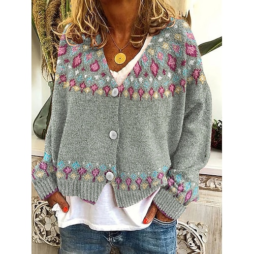 Per donna Felpa Cardigan Casual Morbido Geometrico Blocco di colori A Coste Scollo a V Lavorato a maglia Manica Lunga Top Regolari Maglia Natale All'aperto Quotidiano Rosa Verde scuro Autunno Inverno