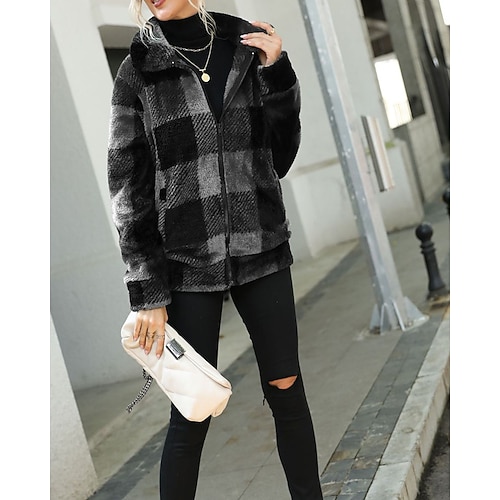 Per donna Cappotto Invernale Cappotto Teddy Caldo Confortevole Patchwork Cerniera Tasca Blocco di colore Moda Casual Blocco di colori Vacanza Streetwear Casuale Abbigliamento quotidiano Regolare