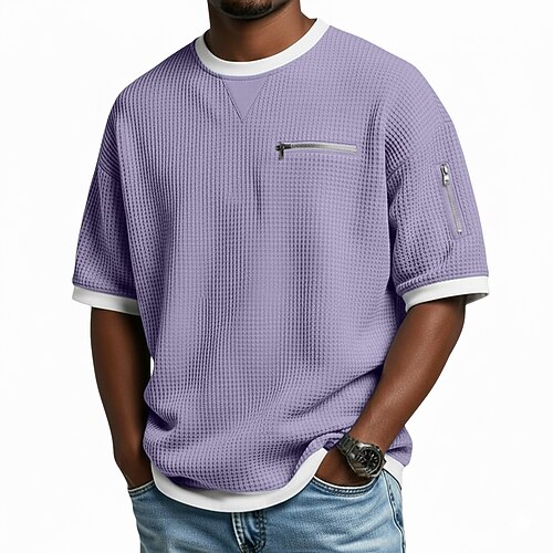 Per uomo Maglietta a Maglia Waffle Maglietta Manica Corta Girocollo Estate Primavera Tutte le stagioni Blocco di colori Testurizzato Moda Designer Casual Tasca con cerniera Casuale Quotidiano