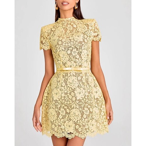 Per donna Mini Abito Abito in Pizzo Tubino Elegante Moda Moderno Quotidiano Vacanza Uscire Vestibilità regolare Floreale Semplice Manica Corta Girocollo Giallo Estate Primavera