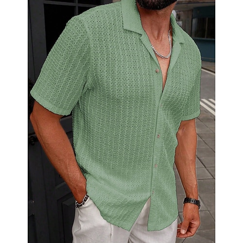 Per uomo Camicia camicia di lino Camicia estiva Abbigliamento mare Camicia con bottoni Liscio Da mare Curise Bianco Rosa Azzurro Manica corta Colletto Estate Primavera Abbigliamento