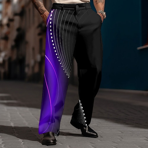 Per uomo Geometrico Sfumatura Linea Pantaloni Eleganti Pantaloni Pantaloni da Abito Misura del girovita medio Casual Abbigliamento Quotidiano Ferie Pantaloni eleganti con vestibilità comoda e tasche