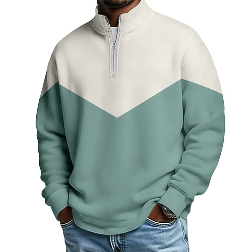 Per uomo Blocco di colori Polo con zip Manica Lunga Magliette polo Colletto alla coreana Casual Scuola Athleisure Ferie Abbigliamento quotidiano Stampa 3D Polo con cerniera a un quarto Primavera