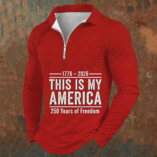 Giorno dell'Indipendenza Americana Per uomo Testo Polo Polo con zip Maglia da golf Manica Lunga Magliette polo Zip a un quarto Sport Moda Casual Quotidiano All'aperto Vacanza Cerniera Stampato