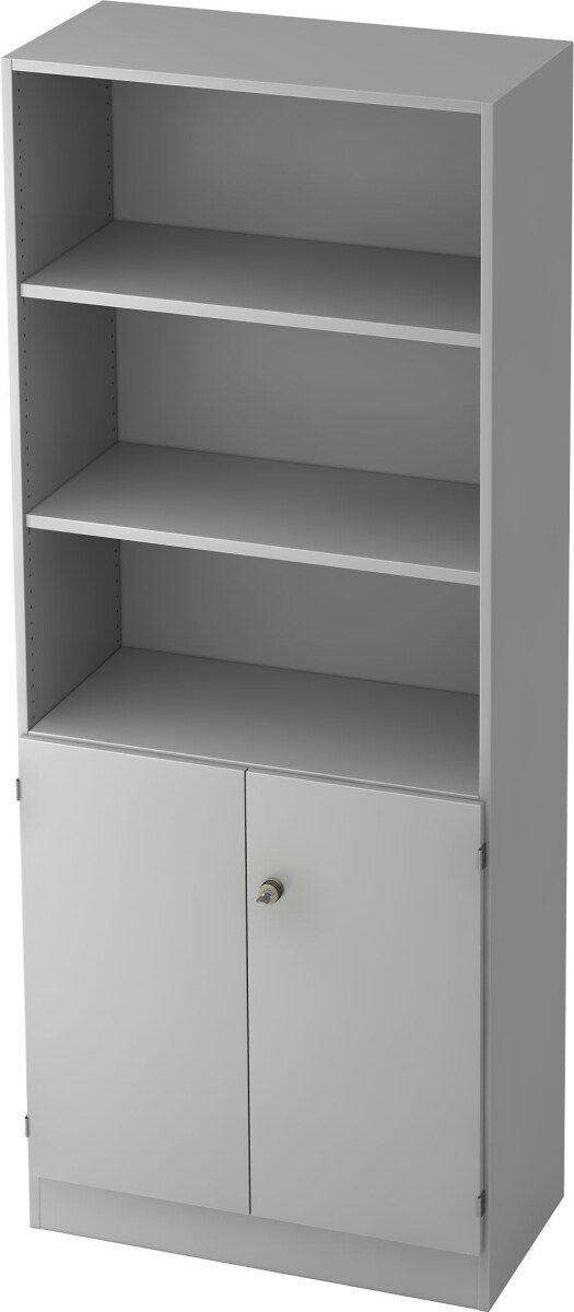 Hammerbacher Regal 5 OH 2 OH 80x42x200,4cm Türen Sockelblende Griff SG Grau/Grau