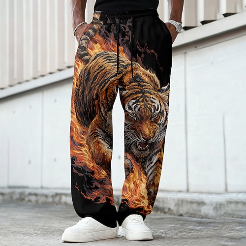 Per uomo Animale Tigre Fiamma Pantaloni da tuta Pantaloni Pantaloni casual Misura del girovita medio Vintage Retrò All'aperto Caccia Allenamento Coulisse elastica in vita Pantaloni a gamba dritta con